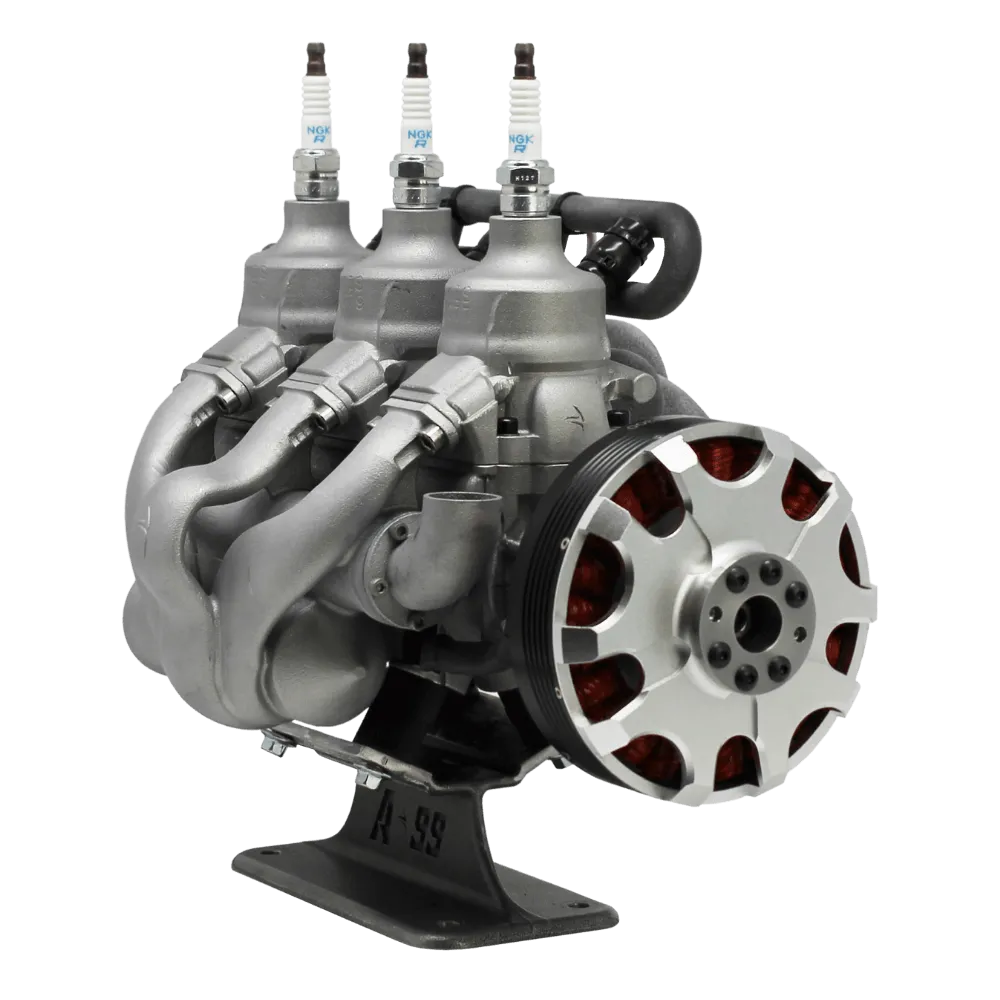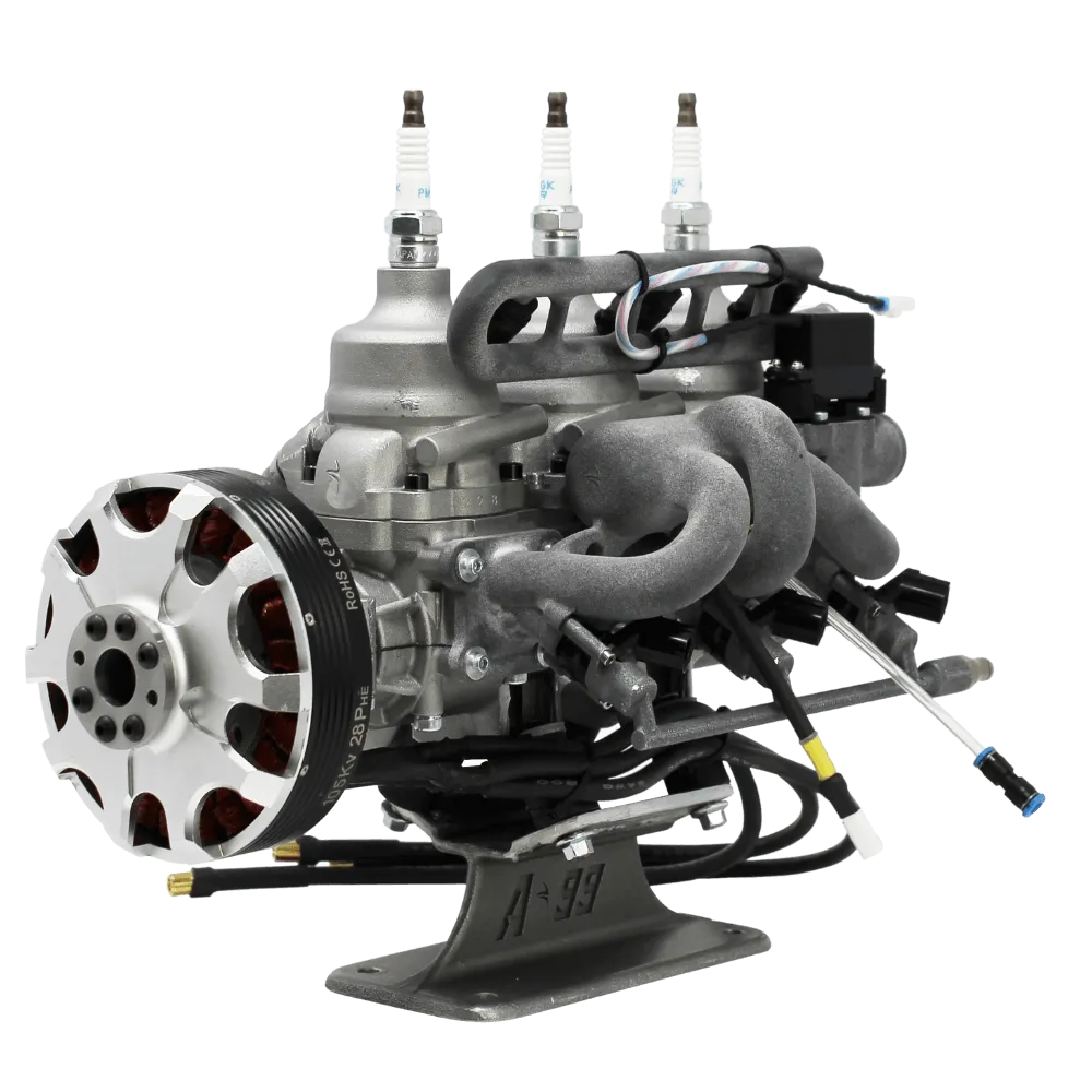 The A99S (series generator system), is currently under development. It utilizes A99 core triple inline architecture, based off Cobra Aero’s A33 combustion system. It features the same great benefits of the core A99, with a purpose-designed, liquid cooled 3-phase brushless alternator.